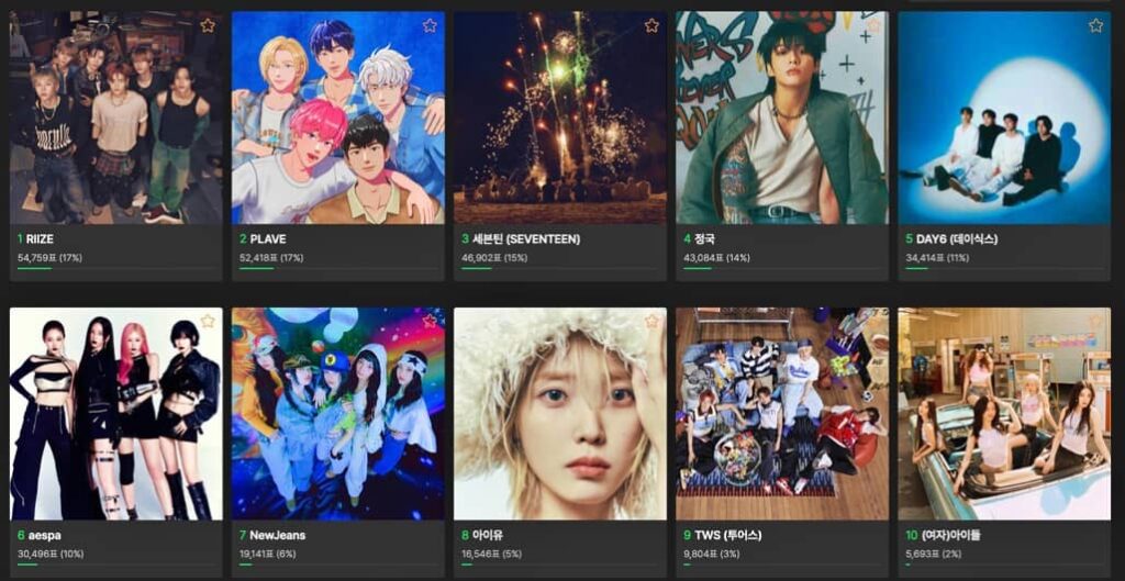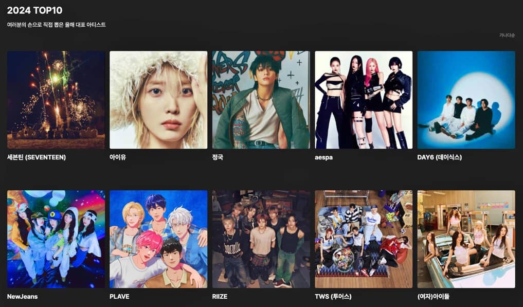 The first round of voting for the 2024 MMA, for the 10 artists who received the most love on the music streaming platform over the past year, was held from October 31 to November 14. The winners were determined by 80 percent based on Melon downloads and streams and 20 percent based on user votes.