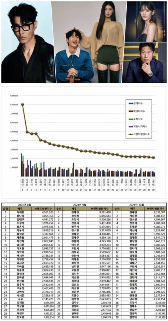 30 most popular Korean actors and actresses in July, August, and September 2024.
