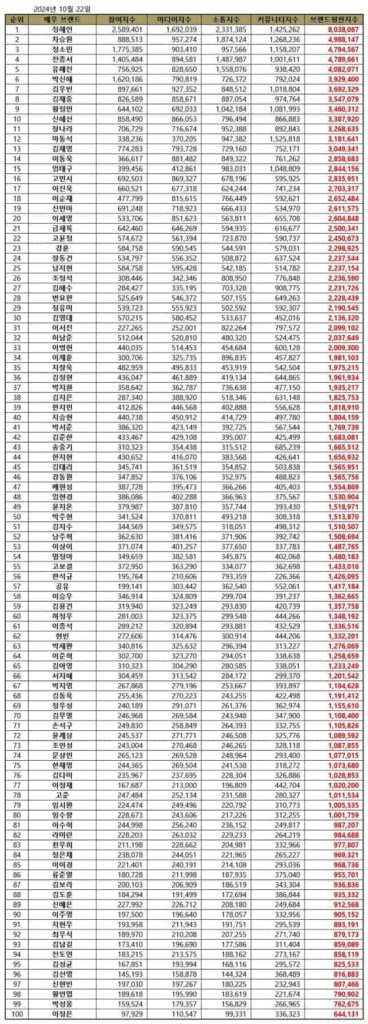 Top 100 Korean Actor Brand Reputation Rankings October 2024.