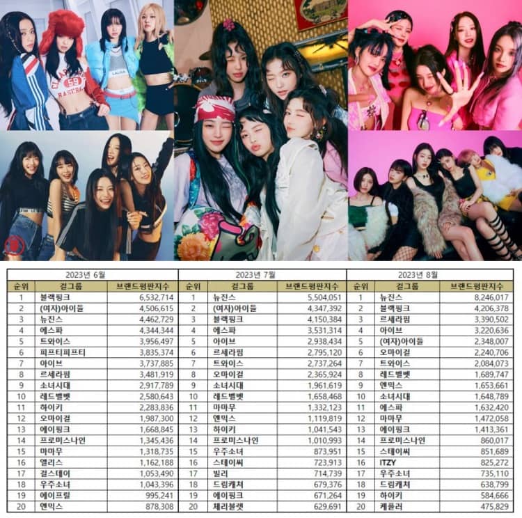 The Korean Business Research Institute analyzed 46,858,362 girl group brand big data between July 13 and August 13, 2023, for August’s Kpop girl group brand reputation rankings. This amount represents a 7.30% decrease compared to the 50,549,740 girl group brand big data analyzed in July.