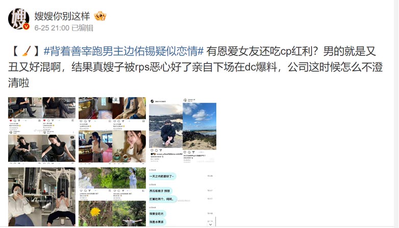 On June 25, a post emerged on Chinese social media, Weibo, with new evidence of Byeon Woo Seok and new dating rumor with an alleged current girlfriend. According to the post, Byeon Woo Seok had been dating this new girlfriend at the moment, but still benefitted from the viral fame of his couple chemistry with co-star Kim Hye Yoon.