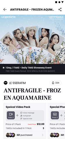 TAKE™️ is the term for the unique digital collectibles available on MOMENTICA, ranging from digital photo cards and short-form videos to handwriting and voice files of your favorite artists. The collectibles were captured during album production and performance schedules. The best part is that these authentic TAKE™️ are released in limited numbers, and each piece of content is unique.