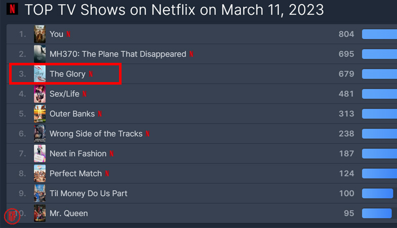 Flix Patrol reported that on March 11 local time, The Glory Korean drama had skyrocketed to #3 of Netflix’s worldwide ranking. No matter how powerful the storm surrounding The Glory director Ahn Gil Ho, the series stays strong with its impressive reputation.