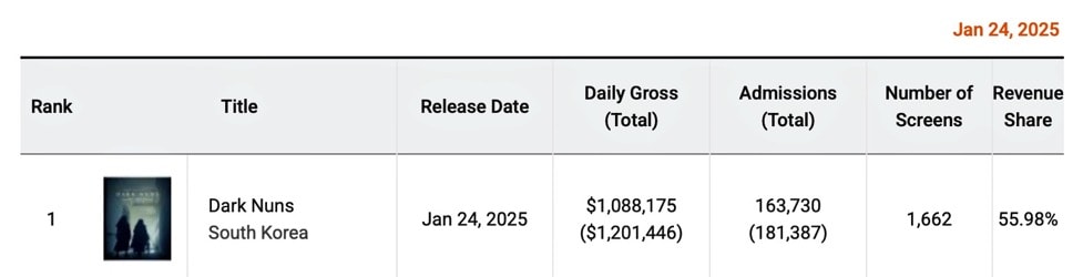 “Dark Nuns” premiered on January 24 in South Korea, Taiwan, Indonesia, and Mongolia. Following its premiere, the film will be released in the Philippines on January 29. It will hit cinemas in 160 countries, including Australia, New Zealand, Thailand, Laos, Singapore, Malaysia, Vietnam, Hong Kong, Germany, and North America.