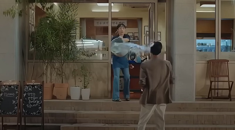 Nam Haeng Seon has just finished cleaning her store’s window when Choi Chi Yeol comes. However, it is unexpected to be one of the funniest moments in Crash Course in Romance. Haeng Son accidentally threw the dirty water right into Chi Yeol’s face! It is more amusing to see Chi Yeol’s speechless reaction.