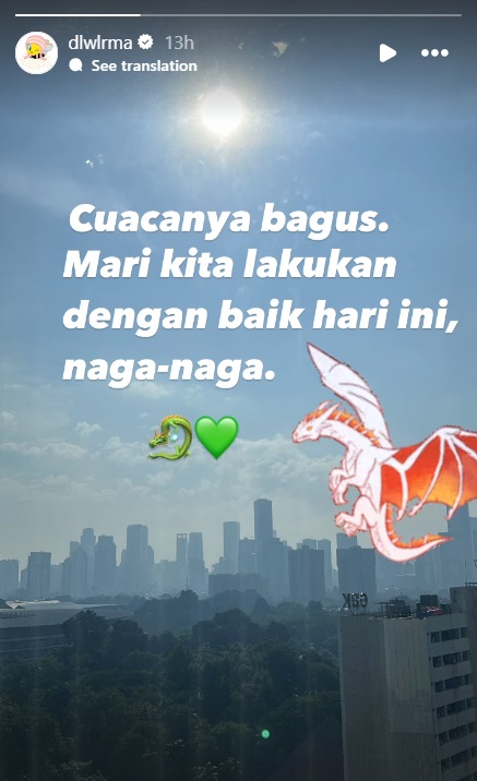 The next day, IU posted the picture of Jakarta sky to her Instagram story and wrote, “The weather is nice. Let’s do well today, dragons.”