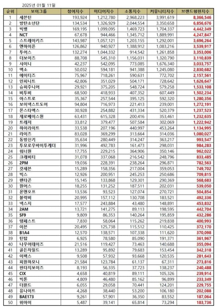 Is your favorite Kpop male group brand included in the Top 50 this month? Please share with us in the comments, and follow Kpoppost for the other brand popularity rankings in January 2025!