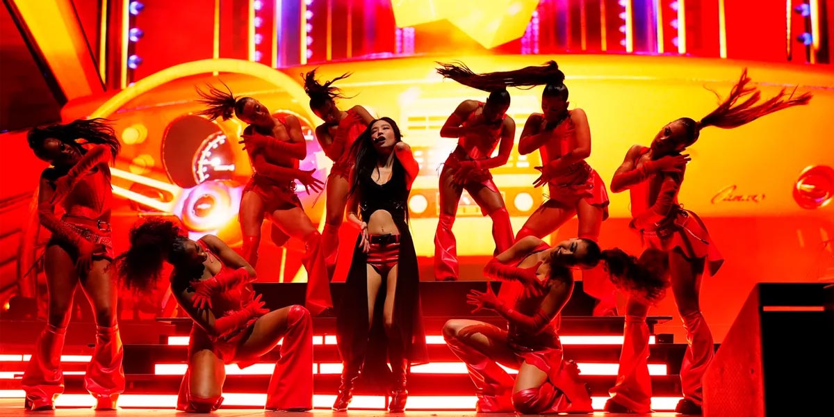 While wearing a form-fitting leather jacket, her backup dancers attempted to remove it as part of the choreography—but the sleeves wouldn’t budge. The moment could’ve easily unraveled the performance.