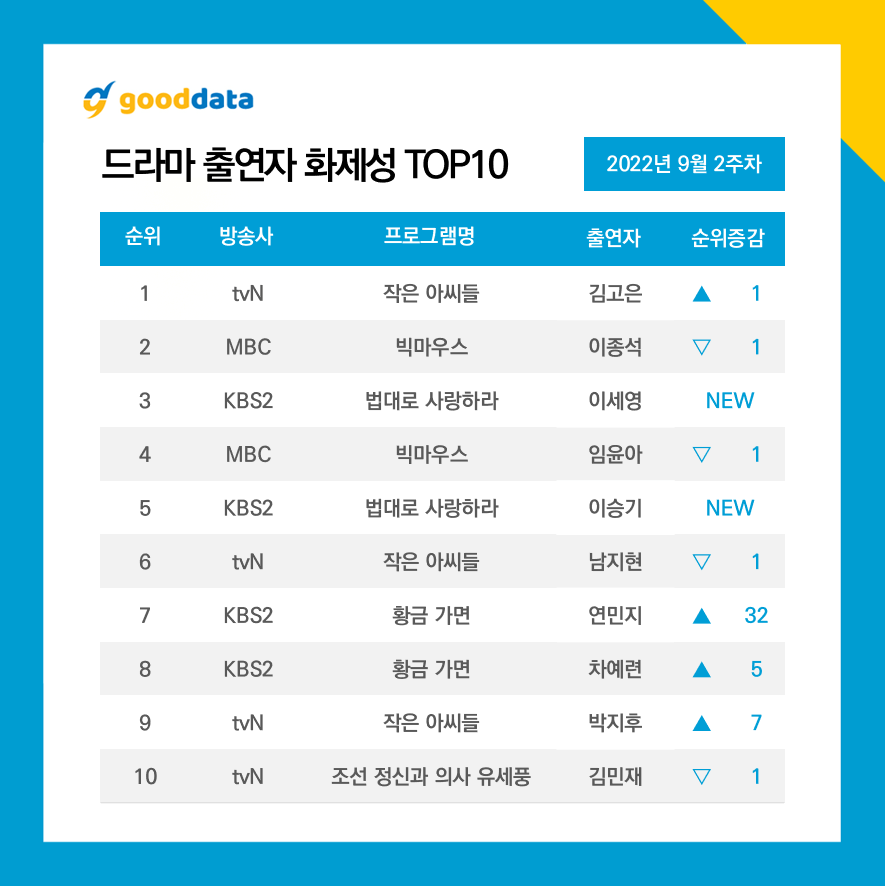 2nd Week of September 2022 – “Little Women” and Kim Go Eun Top Good Data’s Weekly Most Buzzworthy Korean Drama and Actor Rankings