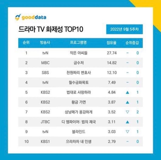 In the fifth week of September 2022, tvN’s drama “Little Women” and its stars dominated the top 10 most buzzworthy drama and actor rankings. So, let’s check out the complete list of Good Data Corporation’s weekly top 10 most buzzworthy Korean dramas and actors of the week.