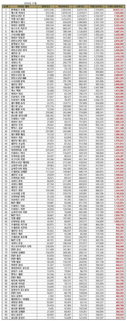November 2024 Top Individual Kpop Idol Brand Reputation Rankings