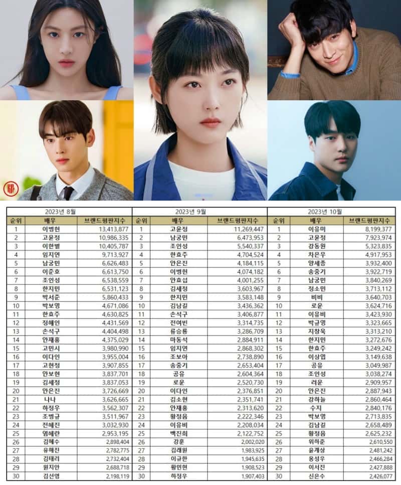 Top 100 Korean Actor Brand Reputation Rankings in October 2023