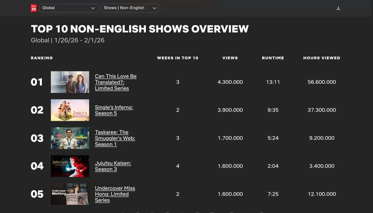 According to Netflix Top 10 data as of February 4, 2026, “Single’s Inferno Season 5” recorded 3.9 million views, calculated by total watch time divided by run time. This translates to 37.3 million hours watched between January 26 and February 1, 2026. It’s allowed the show to maintain its #2 spot on Netflix’s Global Non-English TV Shows chart for two consecutive weeks.