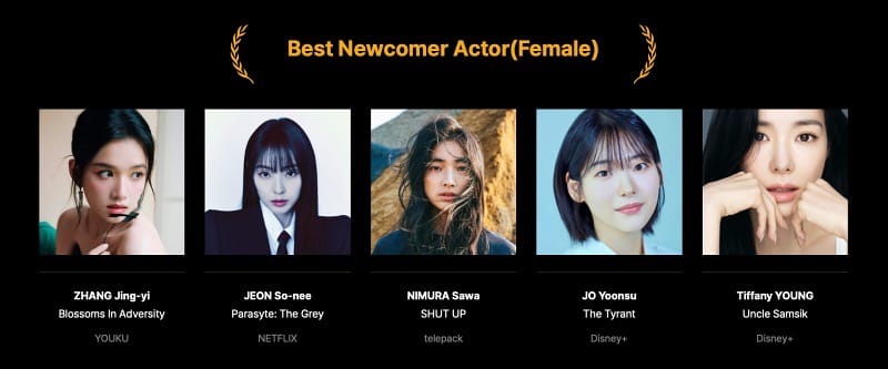 DisneyPlus’ “The Tyrant” is nominated in two categories: Park Hoon Jung for Best Director and Jo Yoonsu for Best Newcomer Actor (Female).