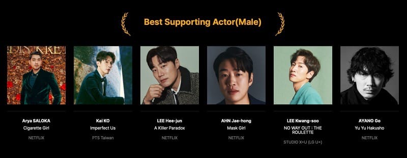 Netflix’s “A Killer Paradox” is nominated for Best Creative. Meanwhile, actors Choi Woo Shik, Lee Hee Jun, and Kim Yo Han are nominated in their respective categories.