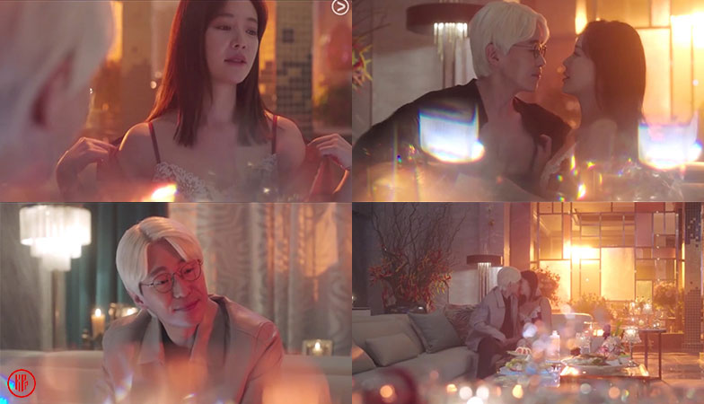 Dressed in a revealing nightgown, Geum Ra Hee poured a drink as she seduced Matthew Lee by taking off the outer silky robe. Then, Matthew said that all he needed was Ra Hee’s lips. He then went closer to Ra Hee and kissed her.