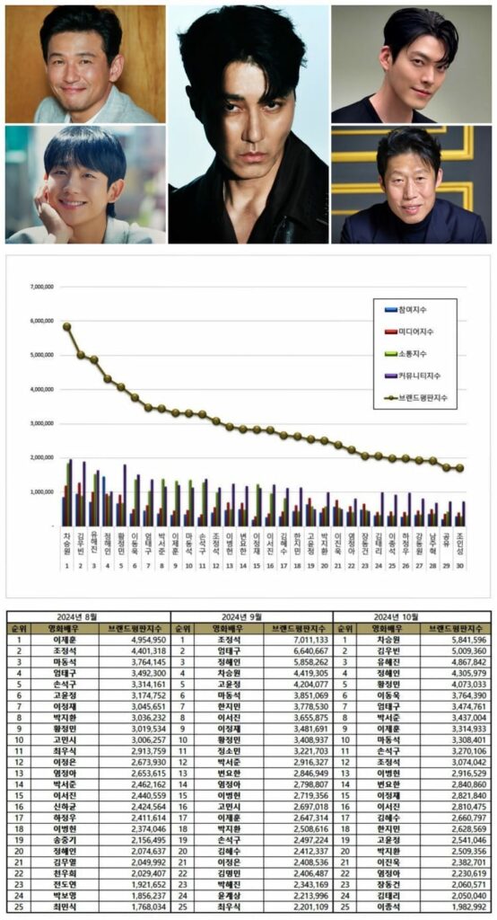 See below the top 25 Korean movie actors in August, September, and October 2024.