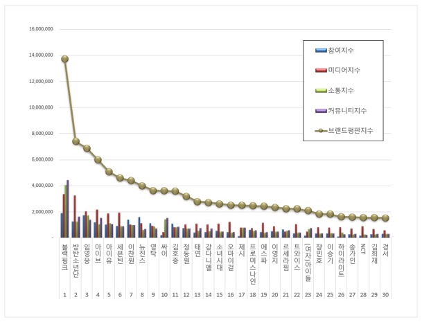 As a result, Kpop girl group BLACKPINK was crowned as the most popular Korean singer this month with a brand reputation index of 4,383,844, marking a significant increase of 213.47 percent since July. Then climbed up to the No. 2 spot, BTS, with a brand reputation index of 7,404,133 this month, marking a rise of 38.84 percent from July.