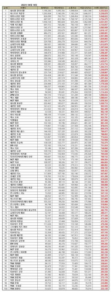 - TOP 50 Kpop Boy Group Brand Reputation Rankings in June 2022