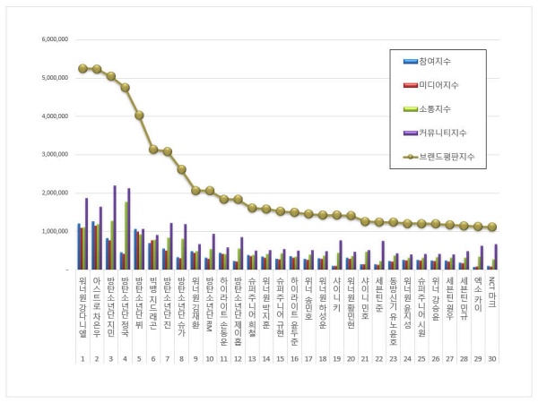 The Korean Business Research Institute has collected 106,732,478 big data of 703 individual Kpop boy group members from May 18 to June 18, 2022. However, compared to the 105,753,751 individual Kpop boy group members big data in May, it increased by 0.93 percent.