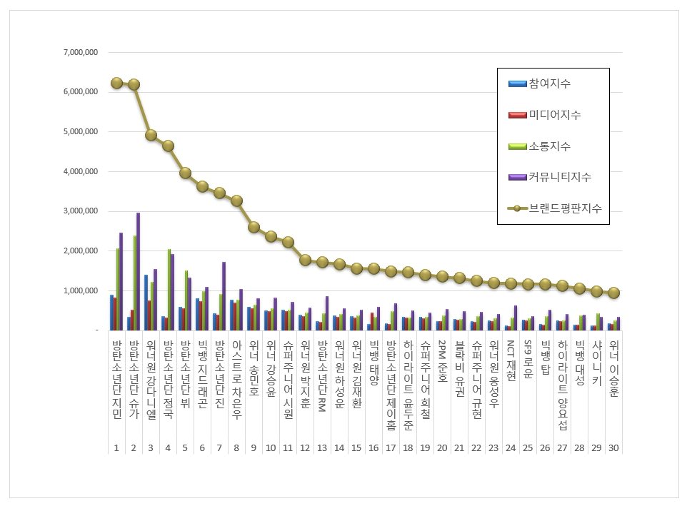 The Korean Business Research Institute has collected 105,753,751 big data of 703 individual boy group members from April 14, 2022, to May 14, 2022. However, compared to the 17,816,465 individual Kpop boy group members big data in April, it decreased by 10.24 percent.