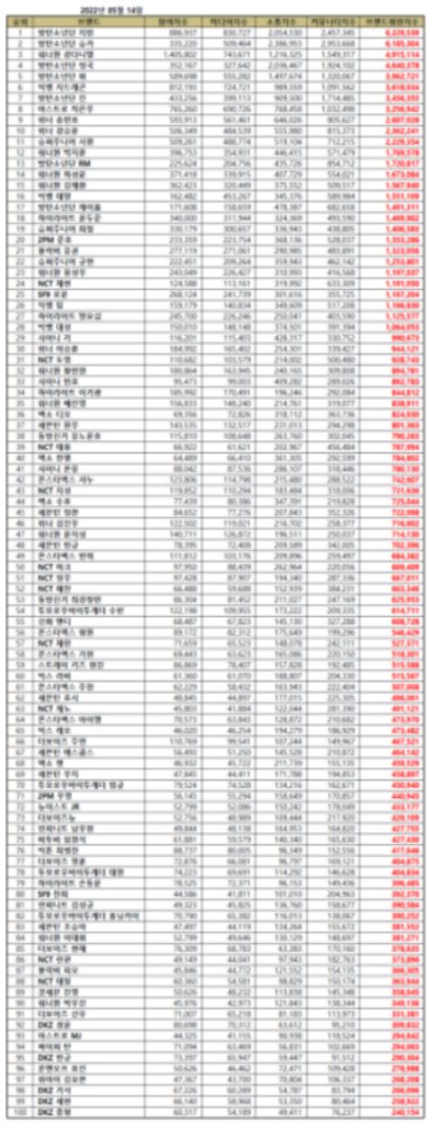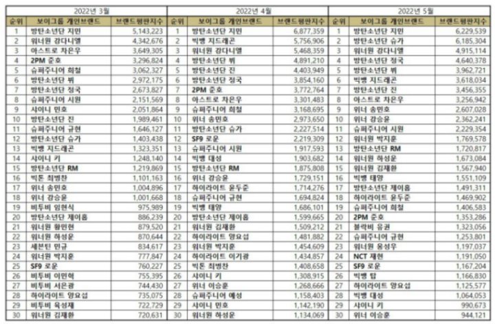 - TOP 100 Korean Star Brand Reputation Rankings in April 2022