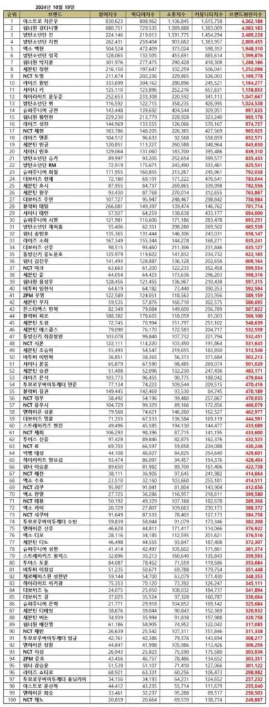 October 2024: Top 100 Individual Kpop Boy Group Member Brand Reputation Rankings