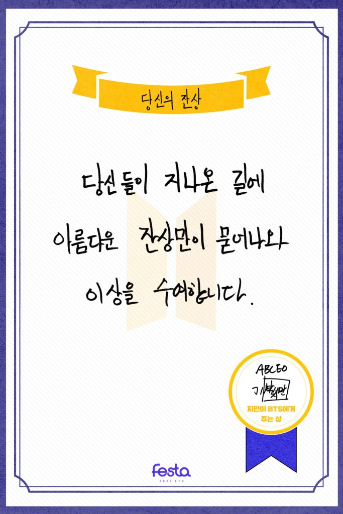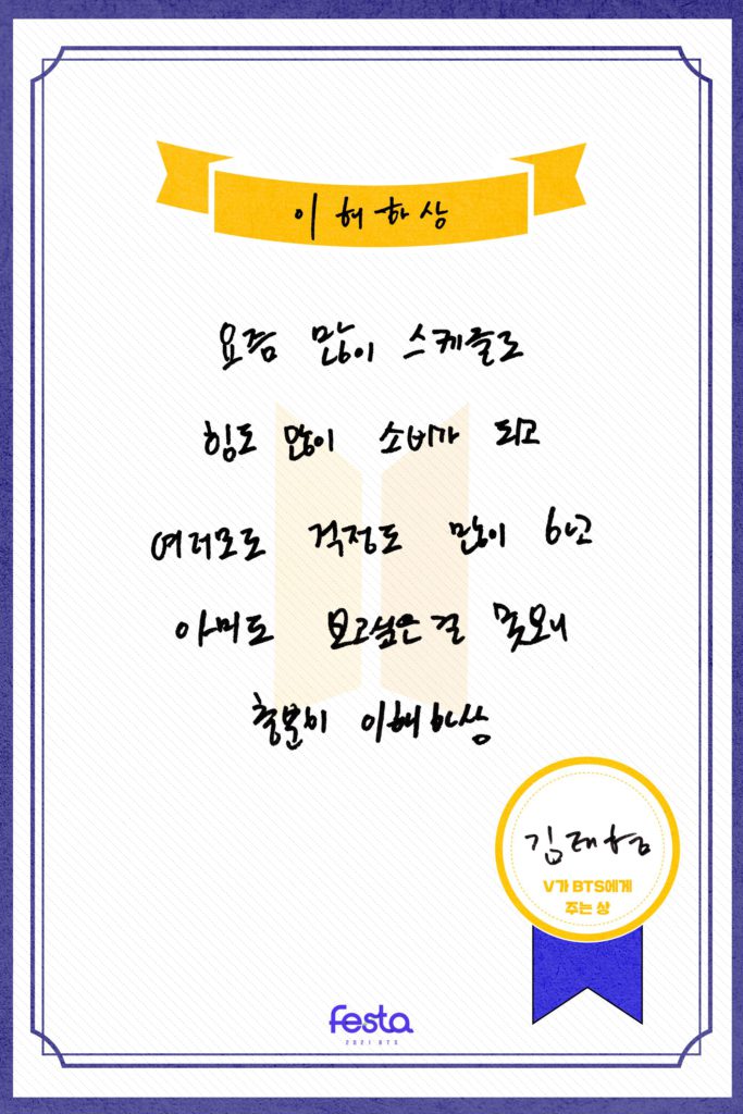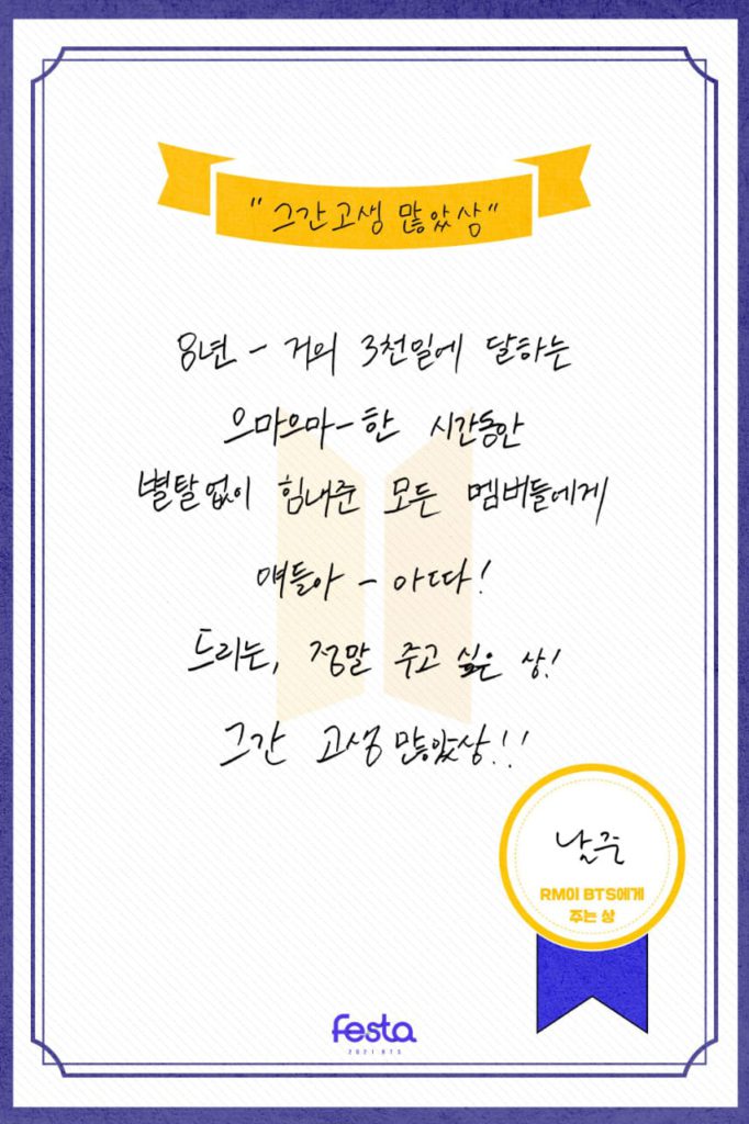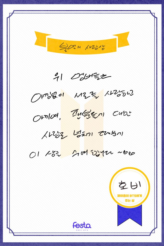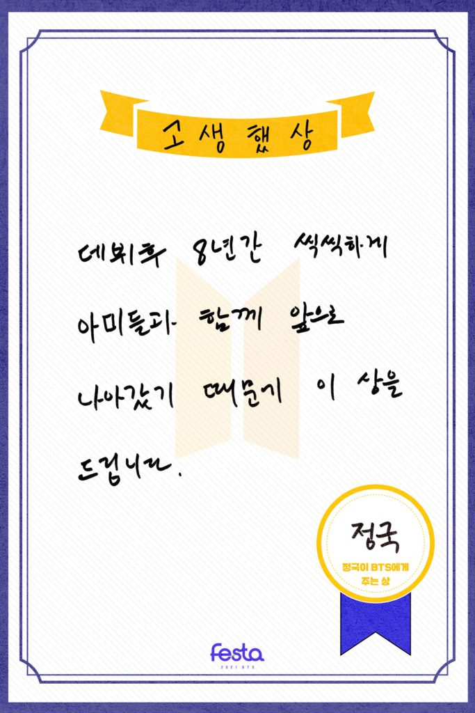 After having the intro of 2021 BTS Profile, let’s continue with the English translation of ‘The Awards BTS members give BTS’ here.