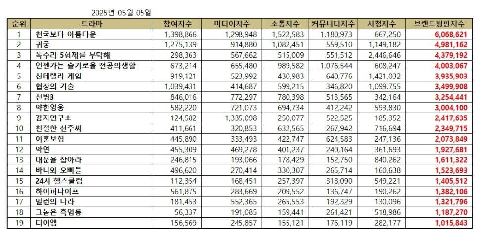 May 2025 Korean Drama & Actor Brand Reputation Rankings