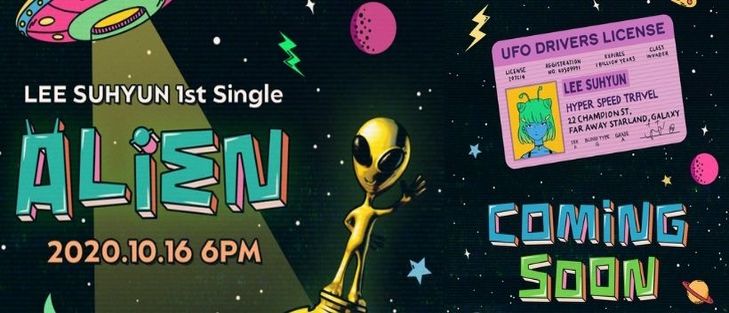 After teasing fans with a riddle poster with the alien in it, on October 5 & 6, YG released intriguing and unique posters with title and date release for Lee Suhyun’s first single, ‘Alien’ on October 16.