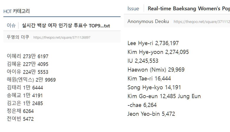 Due to the circulating videos and online debates, fans across platforms—including TheQoo and X (Twitter) demanded real actions from the committees. They demanded the immediate disqualification of IU, Lee Hyeri, and Kim Hye Yoon, more filters against macro-generated votes, as well as the complete removal of the Popularity category altogether starting from 2025, if the Baeksang Awards cannot guarantee fairness.