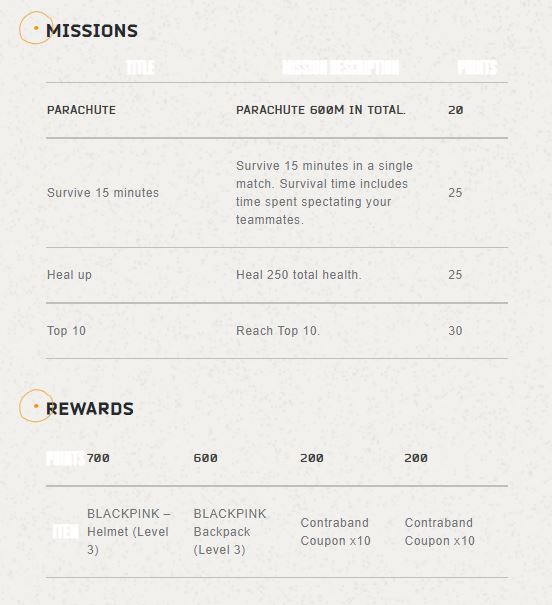 To complete the collaboration, PUBG also offers the BLACKPINK Special Drops Event. And in this event, gamer BLINKs will complete various quests to gain BLACKPINK-themed rewards such as BLACKPINK Helmet, BLACKPINK Backpack, and contraband coupons.