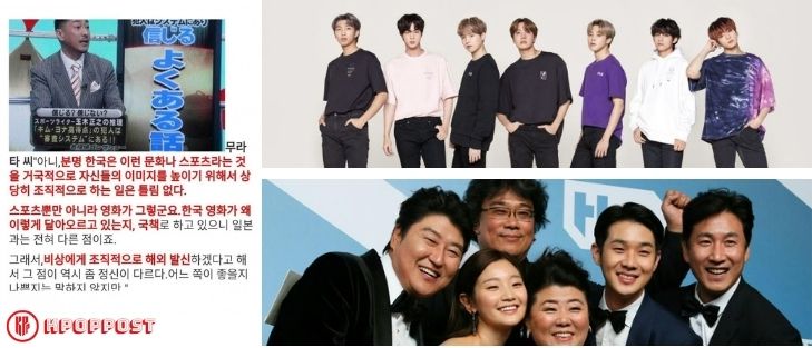 Netizens posted a series of translations from claims made in Japanese media on an online community forum, which lead to fans’ anger. The claim said that BTS and Bong Joon Ho Oscar-winning “Parasite” were initially the Korean government projects.
