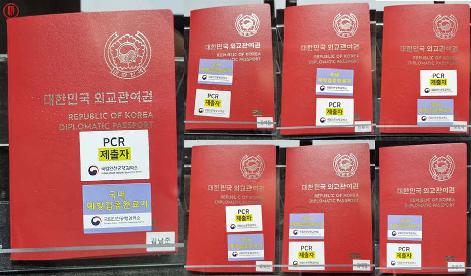 Unlike regular passports of South Korea, the cover of BTS diplomatic passports is in red. After completing their official duty for the first time, we can see official stickers adorned on the passport cover. These stickers showed that BTS members had been fully vaccinated and received a PCR test prior to their trips.