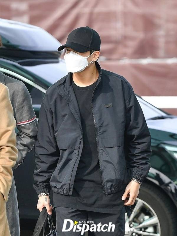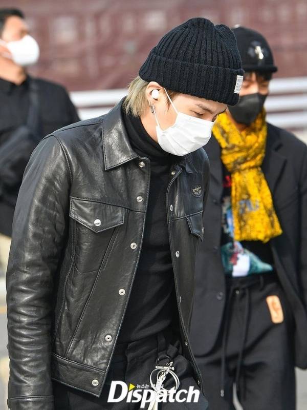 Appeared all in black, Suga has nailed the airport fashion once again! The Men’s Leathers Jacket and the Y&M Know Cap are so Suga-like. He finished off the look with Louis Vuitton Steamer Tote.