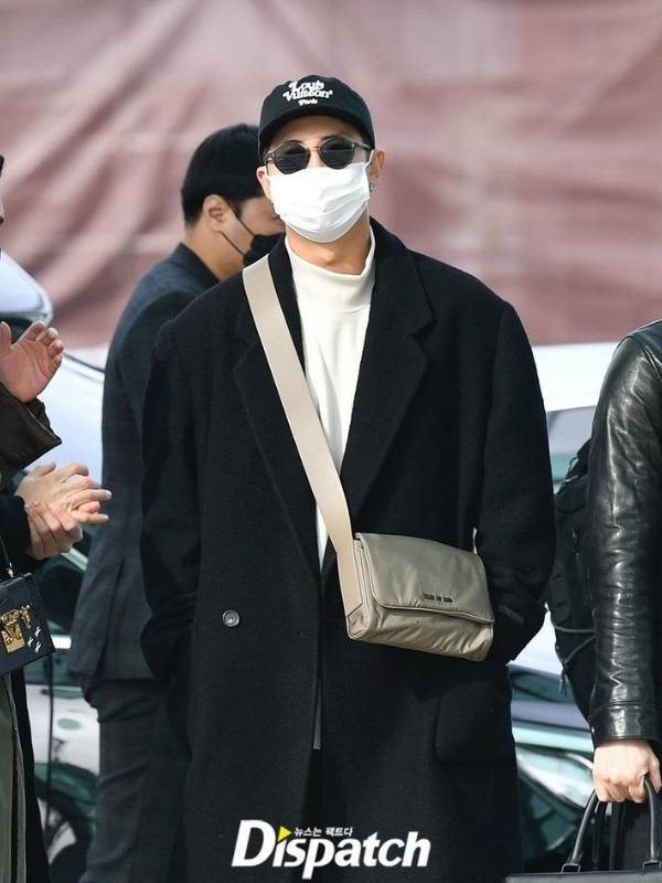 RM sported head-to-toe ‘Fear of God’ with Louis Vuitton with a clean and stylish look. He looked stunning wearing the oversized double-breasted wool coat. The leader of BTS completed the look with a Louis Vuitton x Nigo LV square cap.