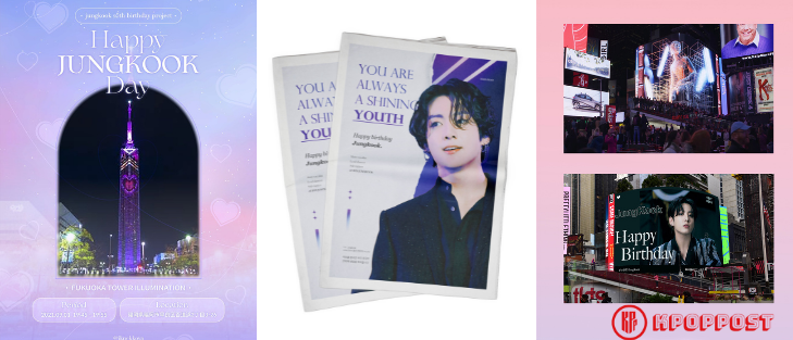 With only days away from BTS Jungkook’s birthday, ARMY are getting busier preparing celebration projects. Let’s peek at how ARMY prepares the special day of BTS Jungkook, from Fukuoka Tower in Japan to New York Times Square!