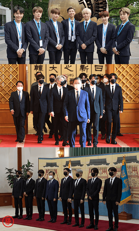 Furthermore, attending the ceremony wearing formal black suits, BTS members greeted the South Korean President Moon Jae In with a fist bump.