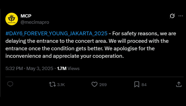 Inside the venue, chaos continued. Security appeared overwhelmed. Fans took to social media with hashtags like #Day6JakartaScam and #MecimaProFail, venting their frustration at the lack of preparation, safety protocols, and communication.