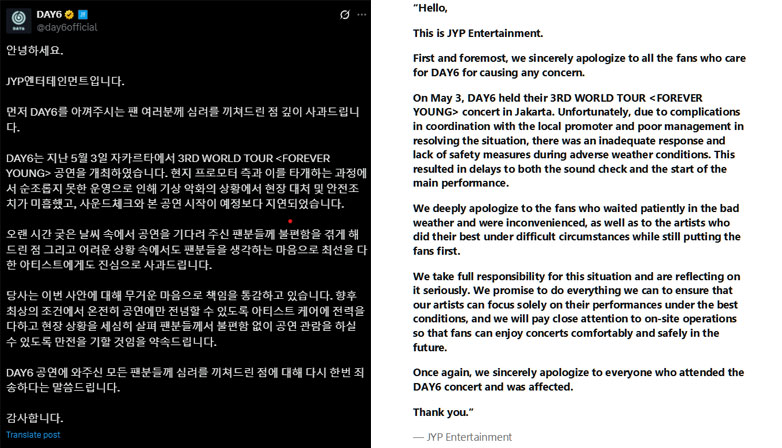 If K-pop is to continue its global expansion, it must also evolve its standards of global responsibility. Artists like DAY6 shouldn’t have to apologize for operational disasters outside their control. And fans should never be made to feel unsafe for supporting the music they love.