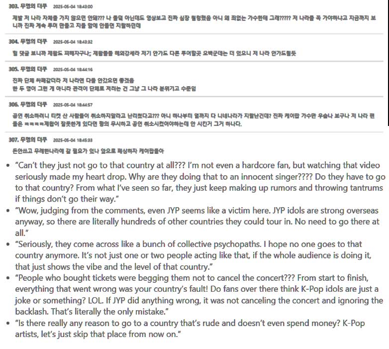 On platforms like TheQoo, some comments blamed the country itself, suggesting that K-pop artists should simply avoid Indonesia in the future. Phrases like “Why go to a country that treats idols like this?” and “They don’t even spend money” were widely shared, reflecting a sentiment that completely ignored the actual fan experience on the ground.