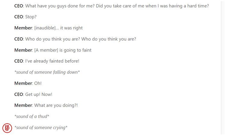 The video then went viral and it reached various media. The woman’s voice in the recording reportedly belongs to SPIRE CEO Kang Seong Hee. This recording then reached various Korean media, and SBS news also included a transcript of the voice that allegedly belongs to CEO Kang Seong Hee.