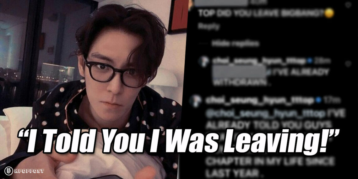 Surprisingly, BIGBANG T.O.P directly replied to the comment and confirmed that he was leaving the group. Moreover, T.O.P also stated that he had publicly stated to leave BIGBANG last year and that he left the group because he was facing a new chapter in his life.