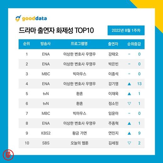 1st Week of August 2022 – Weekly Top 10 Most Buzzworthy Korean Drama and Actor Rankings by Good Data Corporation