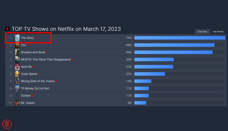 Still, the Netflix series stands tall at #1 of the platform’s Top 10 TV Shows Worldwide, according to FlixPatrol on March 17 local time.