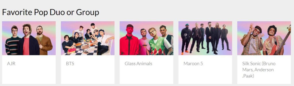 Secondly, BTS will also be facing big names in the “Favorite Pop Duo or Group” category. Powerful contestants like AJR, Glass Animals, Maroon 5, and Silk Sonic (Bruno Mars & Anderson .Paak) are ready with their massive popularity to fight against the Kpop leaders.