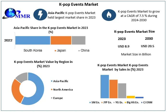 One of the biggest job creation activities in Kpop is global events. The K-pop Events Market was valued at USD 8.9 Billion in 2023 and is expected to reach USD 20.5 Billion by 2030. Today, a lot of fans are no longer just supporters; they are becoming key players in the industry.