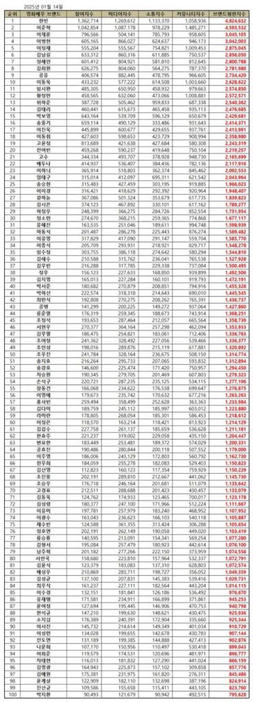 Additionally, the institute performed a consumer behavior analysis to determine the stars’ brand reputation index. The analysis categorized participation, communication, media, and community factors. They then measured them to calculate the stars’ brand reputation index. Based on this data, the institute established the rankings.