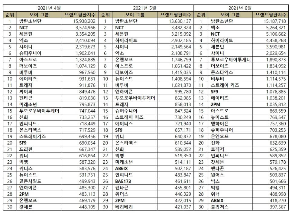 BTS, EXO, and NCT lead in June 2021 Brand Reputation Rankings