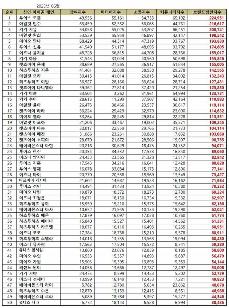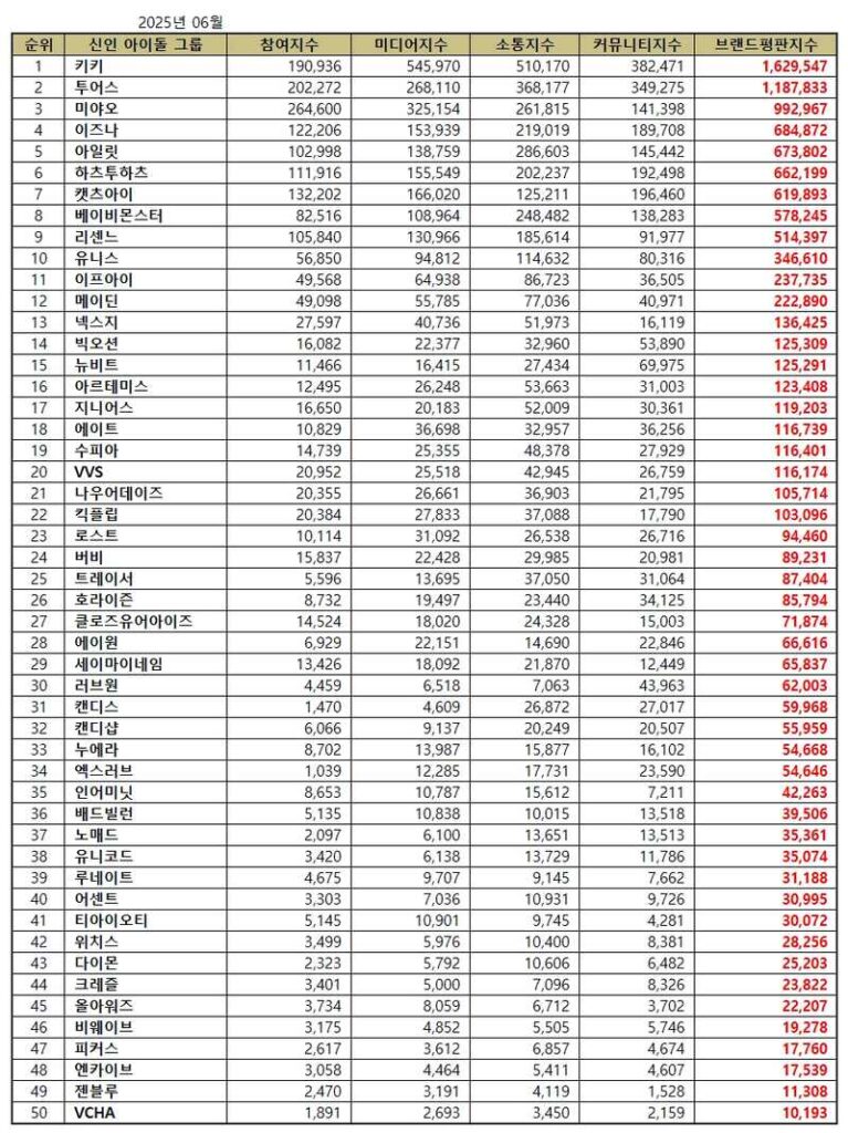 June 2025 Kpop Brand Reputation Ranking for Rookie Idol Groups & Individual Rookie Idols
